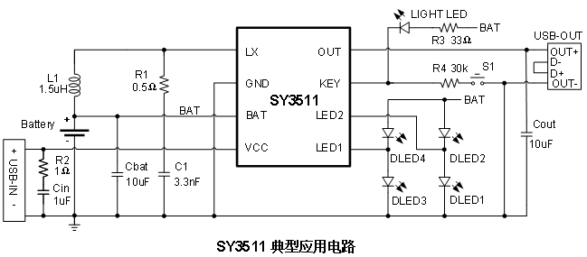 SY3511是一款专为移动电源设计的单芯片解决方案IC,高度集成了充电管理模块、LED电量显示模块、同步升压放电管理模块的移动电源管理芯片,极大的简化了外围电路与元器件数量。针对大容量单芯或多芯并联锂电池(锂离子或锂聚合物)的移动电源应用,提供最简单易用的低成本解决方案。SY3511采用的封装形式为ESOP8。