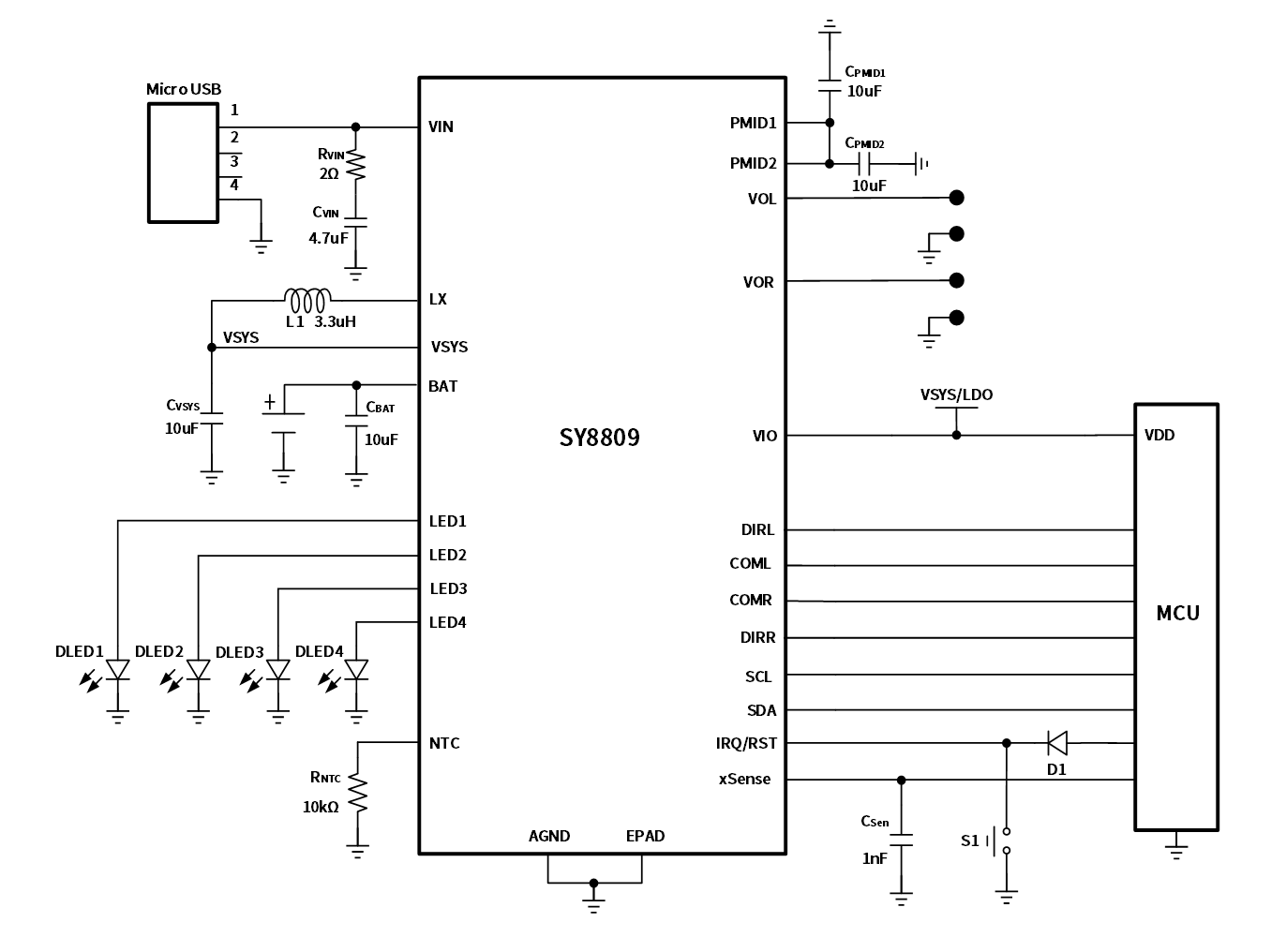 SY8809 integrates standard I2C interface and interrupt for communication with MCU, and control  charging and discharging functions.