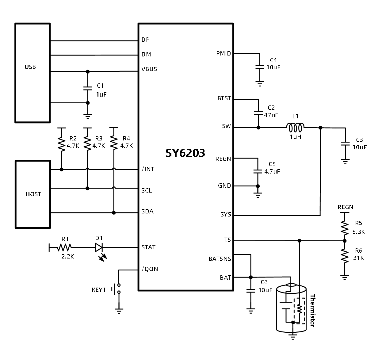 The SY6203 is a highly integrated 3A switch-mode battery charge management and system power path management device for single cell Li-Ion and Li-polymer batteries.