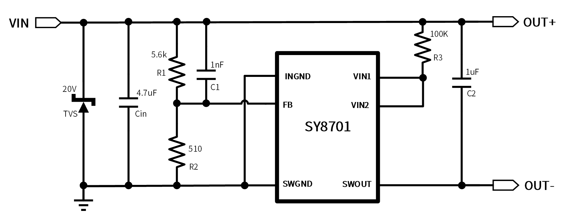 SY8701 along with small SOT23-6 footprint provides small PCB area application.
