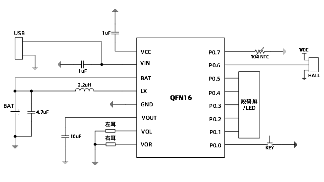 SY8839是专门为TWS耳机充电仓设计的全集成SoC芯片。SY8837/8/9内部集成了兼容8051指令集的CPU,512字节RAM, 12k字节OTP程序存储区,多通道10位ADC,9个GPIO,一个线性充电模块,一个Boost升压模块、两个独立放电控制MOS管和耳机双向通讯模块。SY8839芯片VIN管脚支持过压保护,最高耐压可达35V。 SY8839为QFN16 3*3封装。