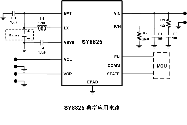 SY8825具备放电使能控制,MCU可以直接通过EN来灵活控制芯片的放电功能。SY8825集成了单线的状态码输出,方便实现芯片向MCU上报芯片状态。SY8825非常适合蓝牙耳机充电仓的设计,极大简化了外围电路和元器件,为蓝牙耳机充电仓的应用提供了简单易用的方案。