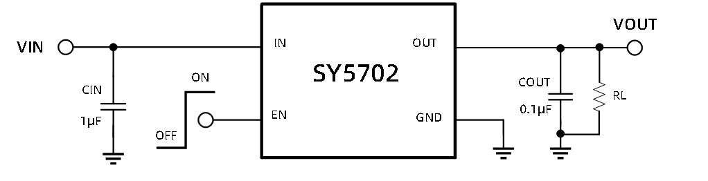 The SY5702 is an ultra-low quiescent current (IQ: 250nA, ISD: 10nA) load switch with reverse current protection and high switching speed. It integrates a 42mΩ (typ.) N-channel MOSFET, which can work with input voltage range of 1.2V to 5.5V and load 2A continuous current.